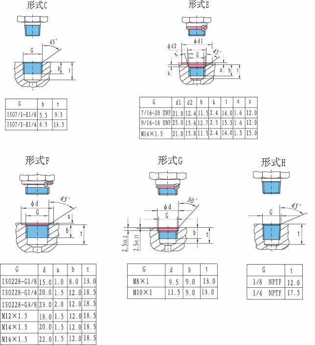 | 螺紋形式G | 密封形式 | p max | H in mm |