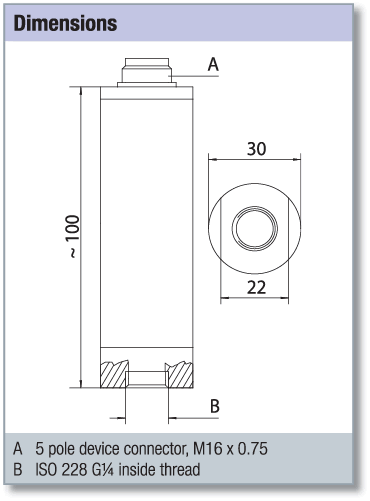 | Electrical connection: | 5 pole device connector, M16 x 0.75 |