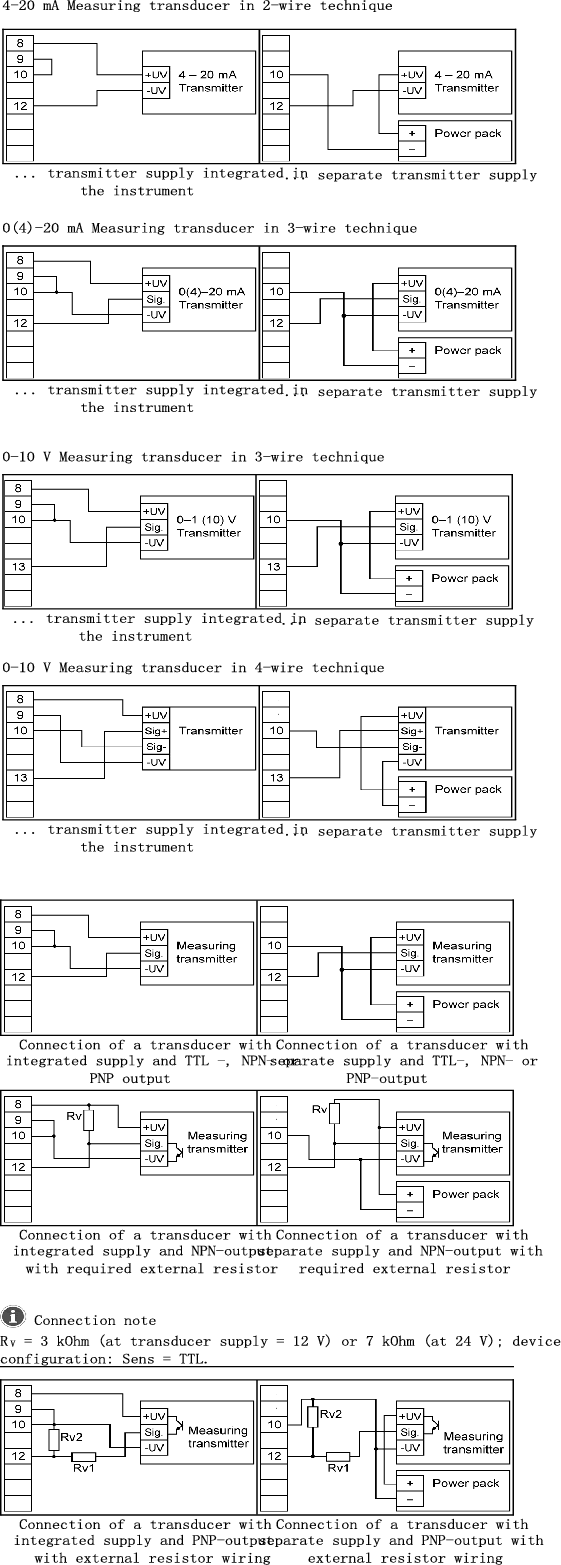 One analogue measuring input for 0 to 20 mA, 4 to 20 mA and 0 to 10 V
