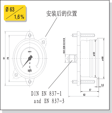 HydrotechnikØ 63機(jī)械式壓力表訂貨號: